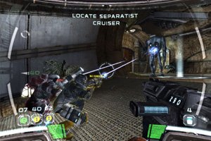 Dieses Konzept zieht sich wie ein roter Leitfaden durch die drei Kampagnen. Zuerst müsst ihr eine Roboter-Fabrik auf Geonosis in die Luft jagen, danach einen gruseligen Sternenzerstörer säubern und zu guter Letzt eine Mission auf Kashyyyk, dem Wookie-Planeten, abschließen. Eine durchgängige Story, ein ansprechendes Ende sowie Anlehnungen an Episode 3 oder sonstige Star Wars Atmosphäre gibt es bei Republic Commando nicht.