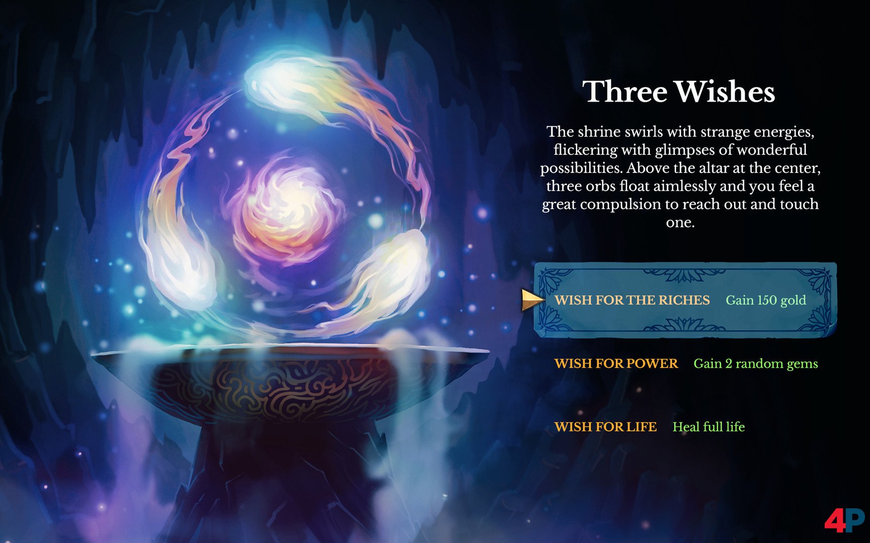 - Überdauernde Ereignisse: Der Spieler kann einzelne Seiten des Roguebook über verschiedene Abenteuer verteilt finden, mit denen er das Starterdeck und die Reliquien verbessern und außerdem neue Edelsteine, Karten, Feinde, Zufallsereignisse, NPCs etc. freischalten kann.