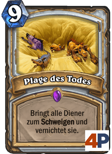 • Plagen sind uralte und mächtige Zauber, die von den 5 Klassen der Schurkenliga Ü.B.E.L. (Priester, Schamane, Krieger, Hexenmeister und Schurke) eingesetzt werden. Diese Karten verwüsten alles, was ihnen in den Weg kommt, und wirken sich auf alle Diener auf dem Spielbrett aus. Entfesselt sie also am besten, wenn euer Gegner dadurch mehr Schaden abbekommt als ihr.